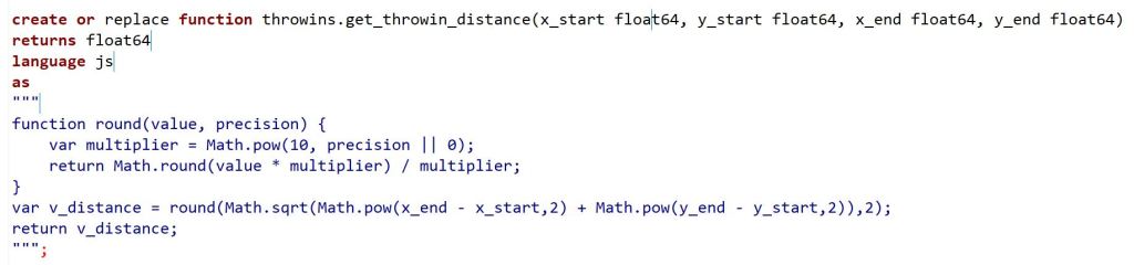 One of my personal killer criterias for SQL are analytical functions and window functions. When working with time-series data, these functions make your life a lot easier. You want to have the start and end position of a player during a defined time frame? FIRST_VALUE and LAST_VALUE provide you the posibility. You need to determine the ball status in the previous or next frame? LEAD and LAG is the answer. Also window aggregations like a moving average a fairly simple. You just need to add a WINDOW clause to your basic aggregation. And everything still within one line of code. Using Python you would need to loop over the different partitions and store intermediate value and handle the results.
